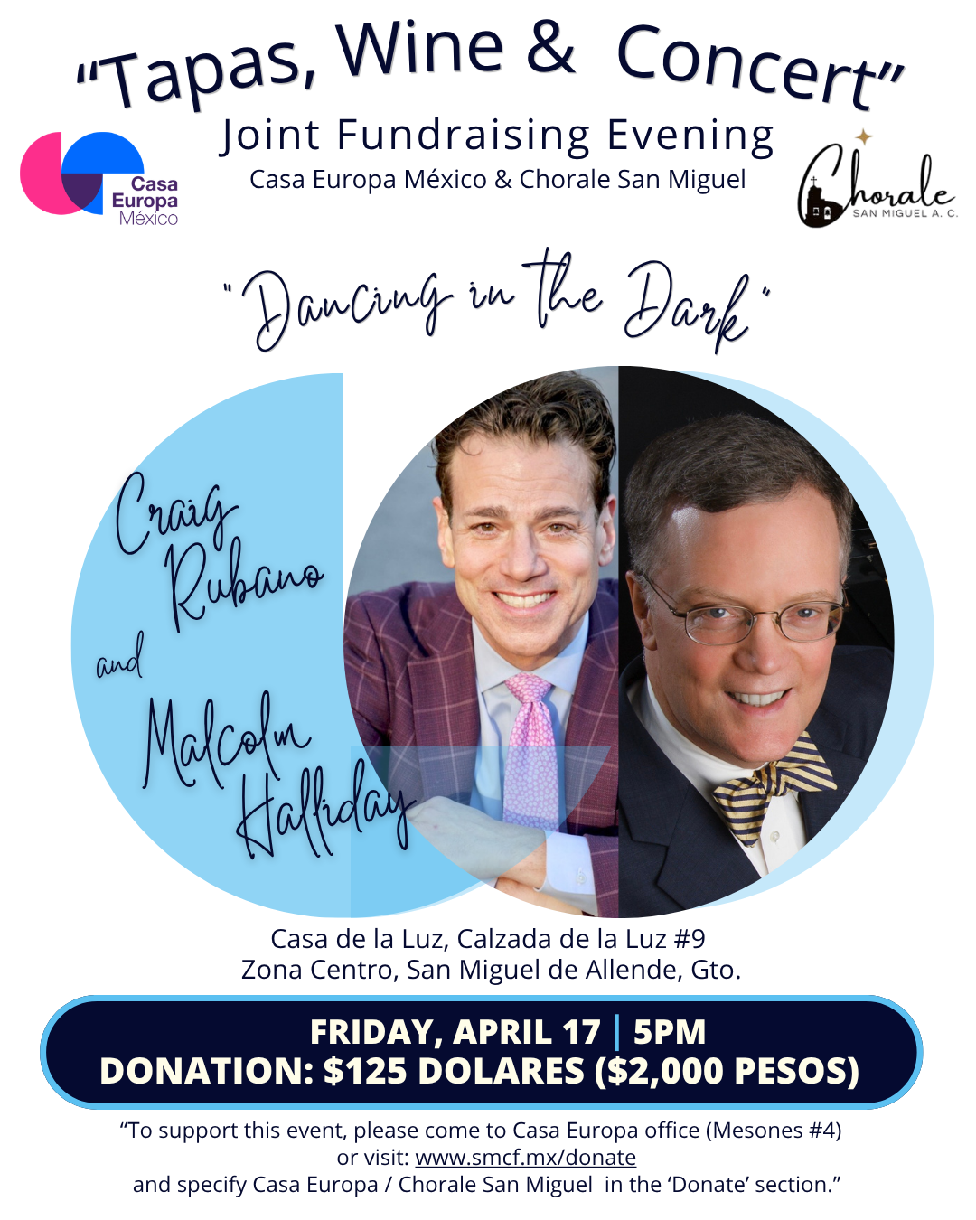 Para realizar su contribución, por favor visite la oficina de Casa Europa en Mesones #4, o done en línea en www.smcf.mx/donate e indique “Casa Europa/Chorale San Miguel” en la sección de donación.